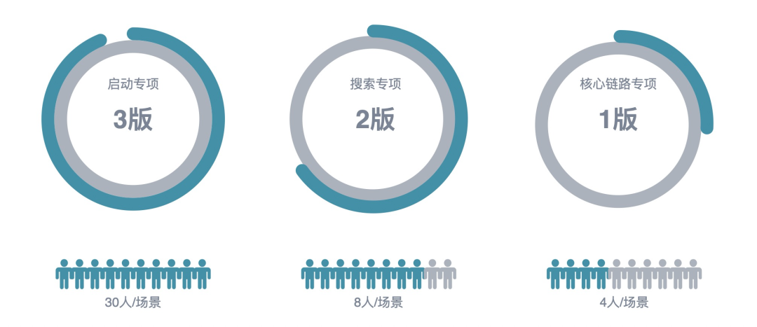 启动专项是第一个性能专题项目,完成了一个场景优化,耗费30人,3个版本迭代。之所以人力比较多,是因为“第一次”面临的问题非常多,指标要分析定义标准、埋点工具要新建、优化过程没经验、管控手段要新建。