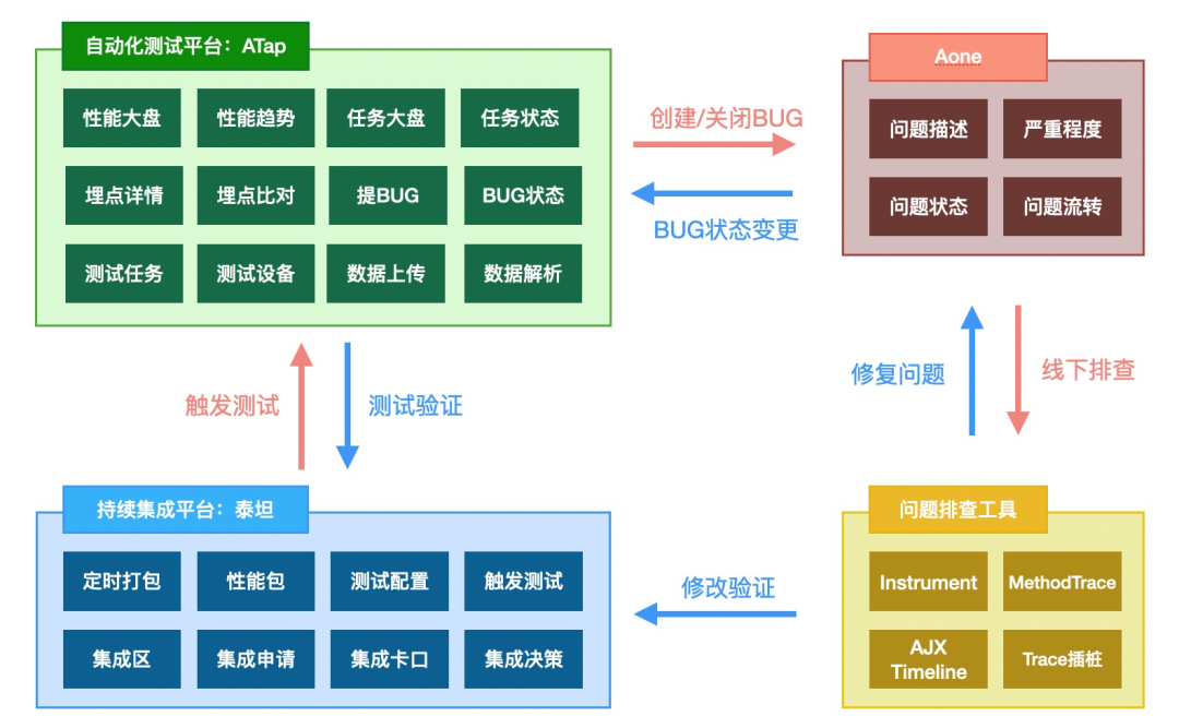 依托泰坦持续集成平台和ATap自动化测试平台,打造连通开发,构建,性能测试,问题跟进、排查、流转、解决完整链路的工具链,提高问题发现和解决的效率。