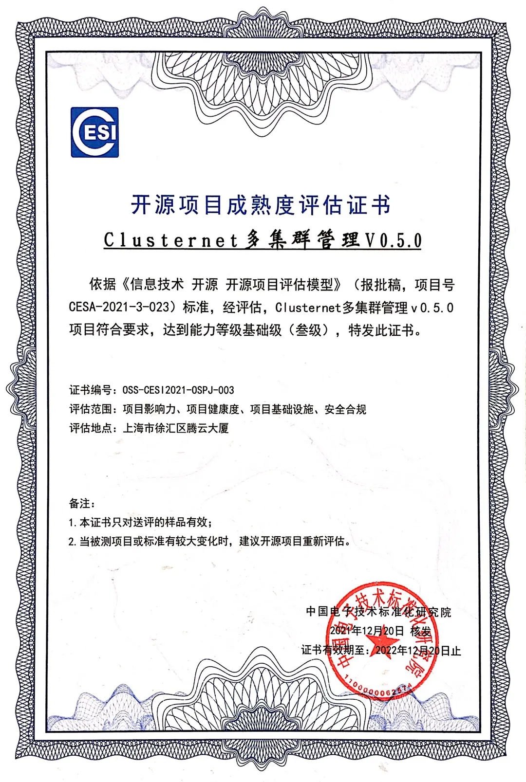 Clusternet 作为首批项目参与了《信息技术 开源 开源项目评估模型参考架构》测评,并成为通过评估的四个项目之一。《信息技术 开源 开源项目评估模型参考架构》由国防科技大学牵头,工信部电子标准院归口并组织举办多次专家研讨会,来自华东师范大学、腾讯、华为、阿里、百度、Intel、开放原子开源基金会、Linux 基金会、OpenInfra 基金会、Apache 基金会、蚂蚁集团、CSDN、滴滴、开源社、鹏城实验室、浪潮信息等企业和组织的专家积极参与讨论,为标准的制定做出重要贡献。