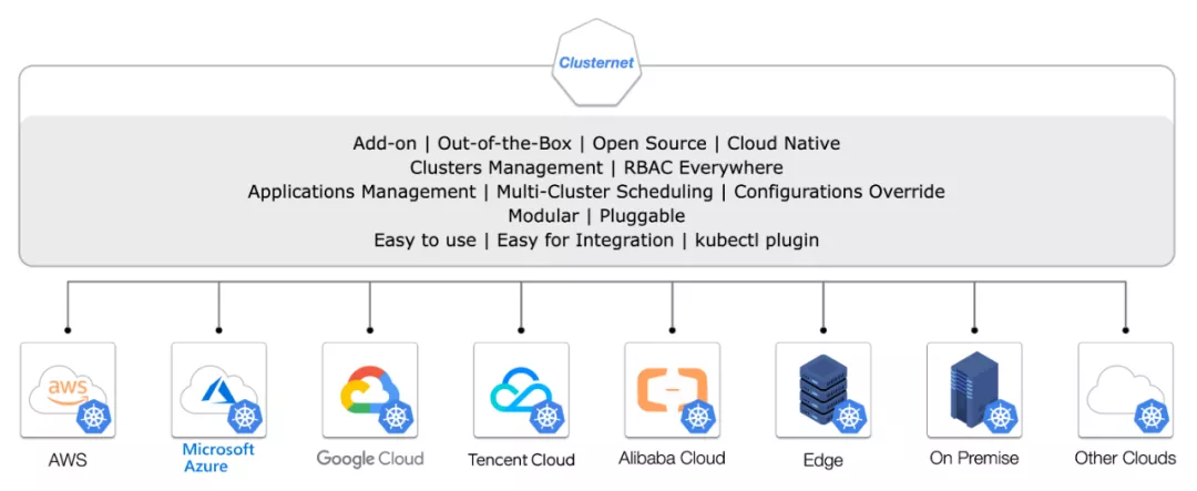 以 Clusternet 项目为基础实现多云多集群管理平台,为用户提供跨云、跨集群、跨region/zone 的分布式容器服务,将更好的满足多种场景需求。