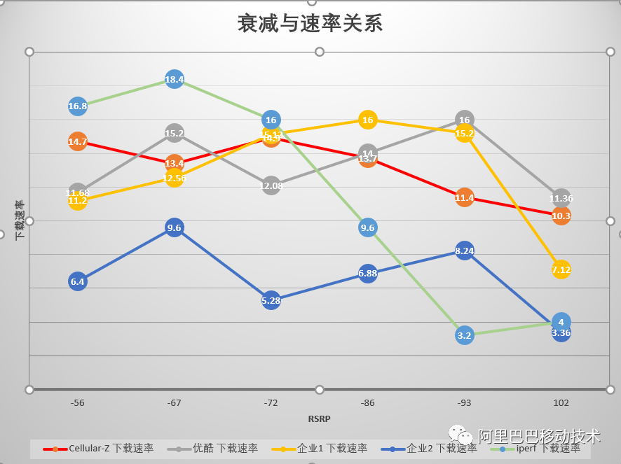下图为:在不同信号衰减情况下,下载速率的一些关系图: