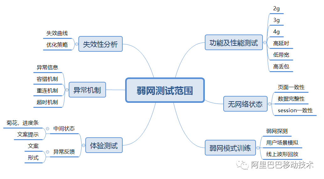 从app的角度看,弱网测试的范围是非常广的,同时对于app的优化也非常重要,下图是对弱网常用的测试项的一些功能梳理,目前平台针对这些弱网的测试都是可以支持的。