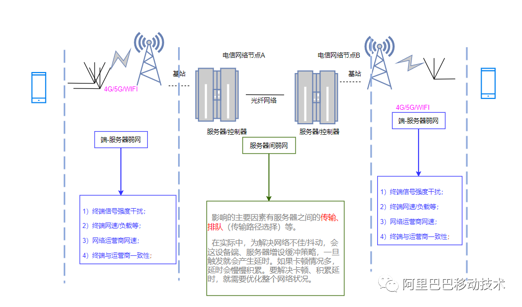 根据用户的实际场景,造成弱网的原因一般有两种:
