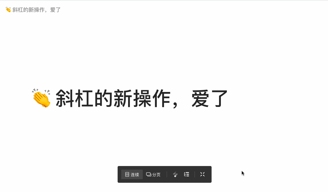 分页,是 PPT 的基础逻辑,有助于突出内容,语雀的文档演示模式也支持基于分页的排版,只需要点击控件上的“分页”按钮,它就可以自动的为你的文档分好页: