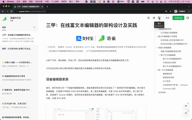 最后,语雀的文档演示模式一直在优化当中,欢迎大家踊跃使用和反馈!