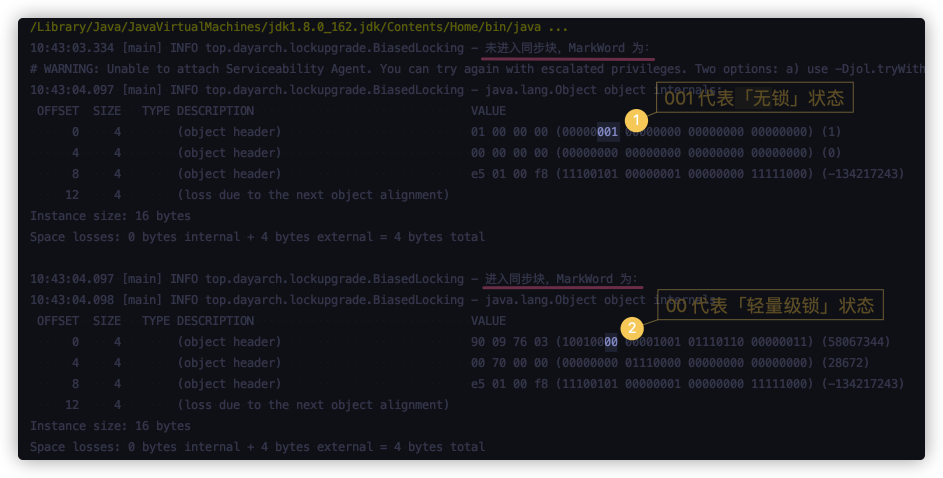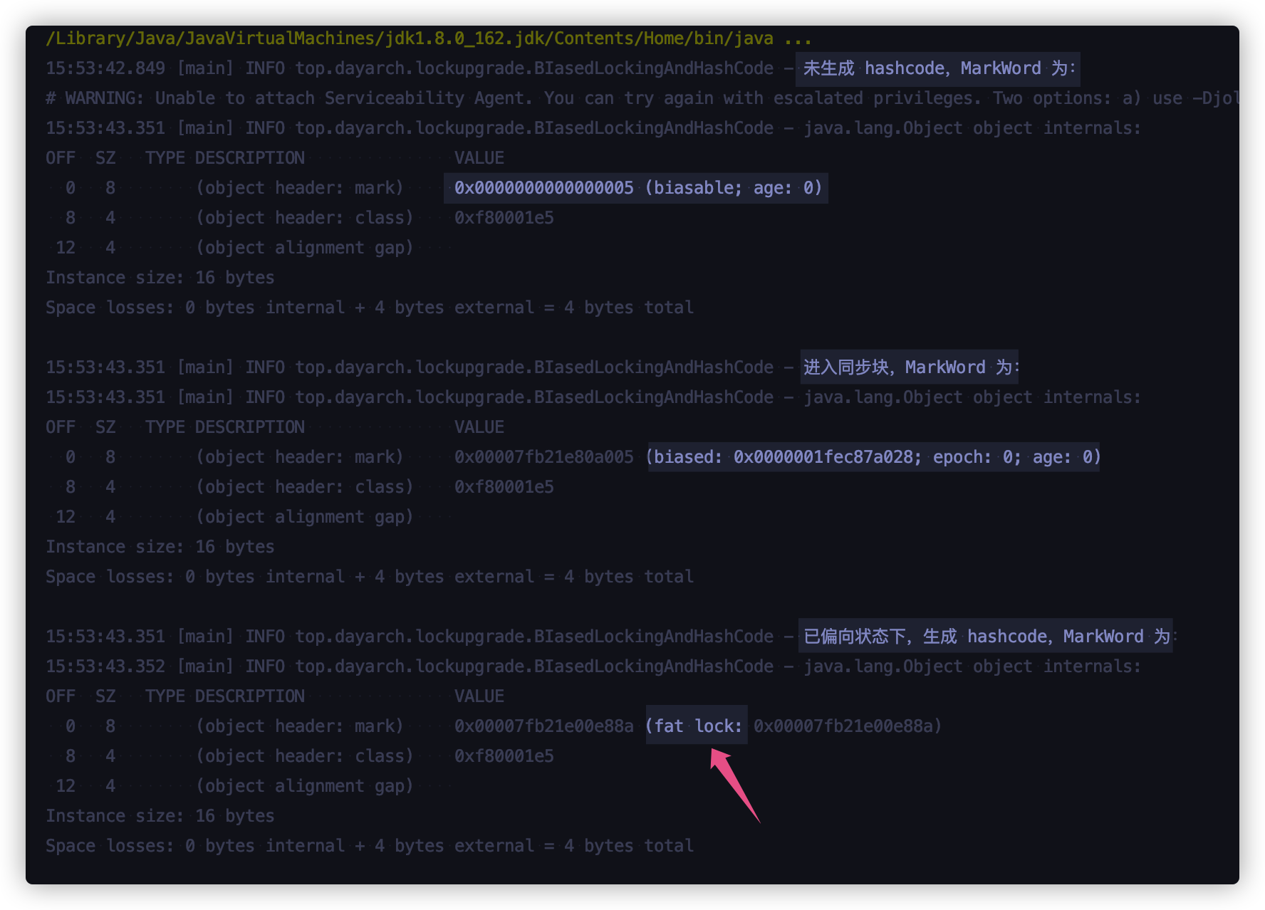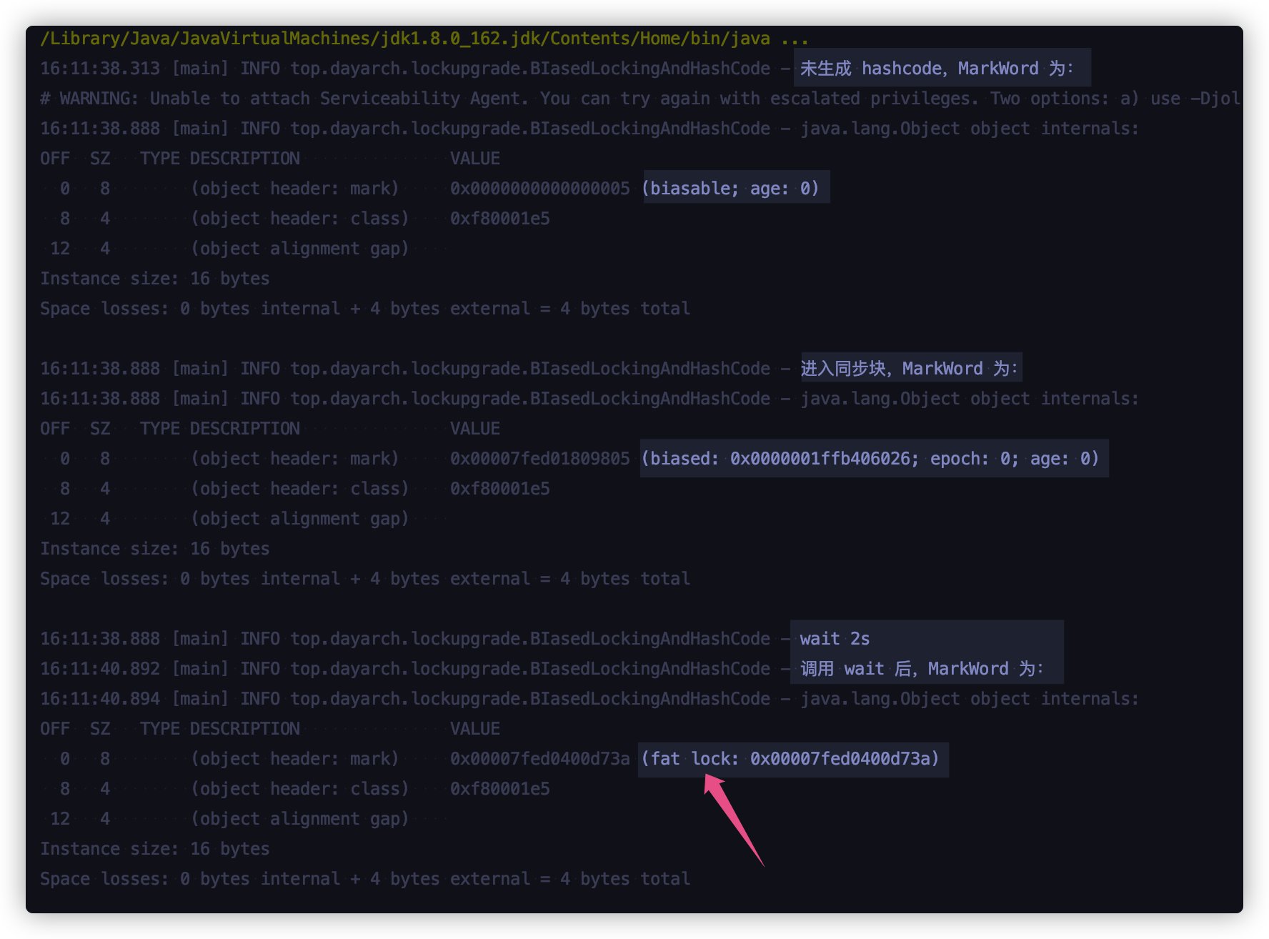 log.info("新线程获取锁,MarkWord为:");