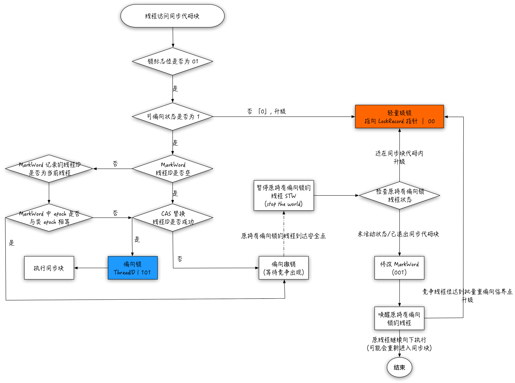 至此,整个偏向锁的工作流程可以用一张图表示: