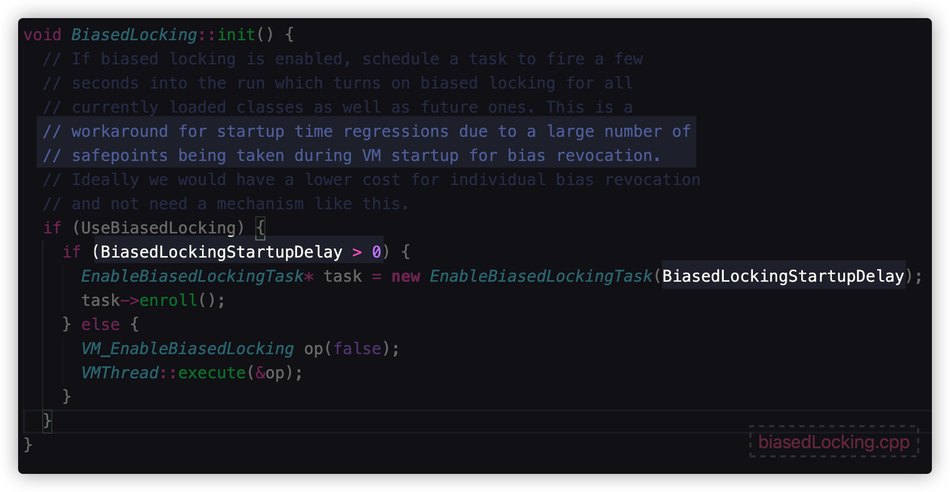 之前对于偏向锁我也只是单纯的理论认知,但是为了写这篇文章,我翻阅了很多资料,包括也重新查看 Hotspot 源码,说的这些内容也并不能完全说明偏向锁的整个流程细节,还需要大家具体实践追踪查看,这里给出源码的几个关键入口,方便大家追踪: