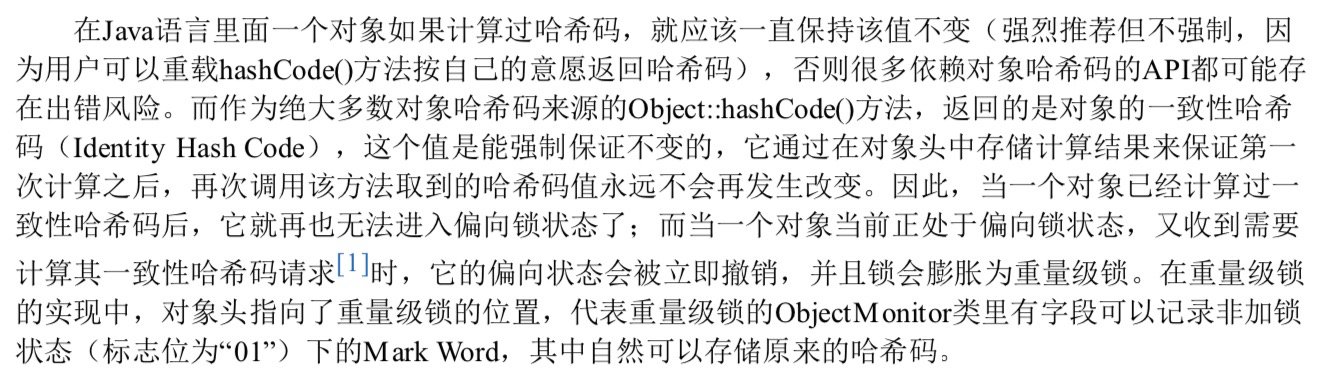 最后用书中的一段话来描述 锁和hashcode 之前的关系
