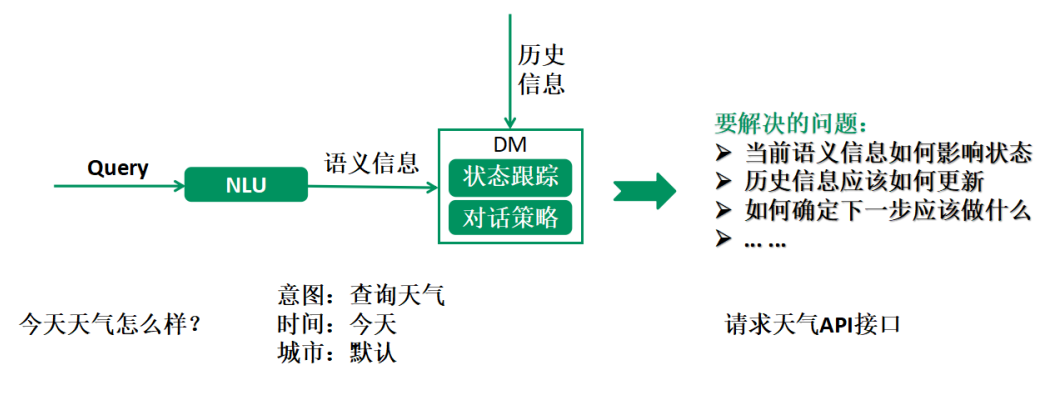 对话管理是语义算法系统的另一关键模块,其任务是根据当前Query和对话上下文推导对话状态,并据此推理对话系统下一步的最佳响应。