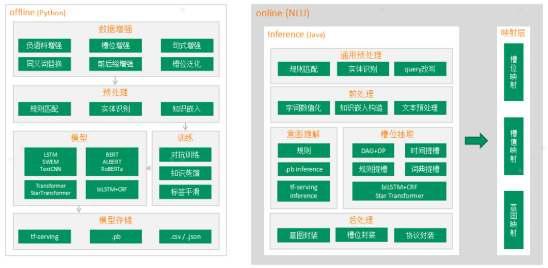 在算法模型方面,小布以强深度学习驱动为主,这类模块一方面效果较好,另外技术方案也已经比较成熟,存在非常多成功的案例。