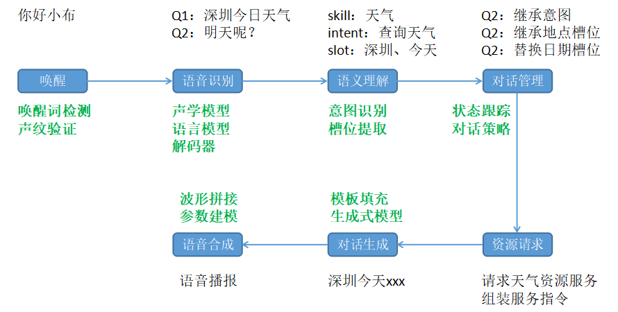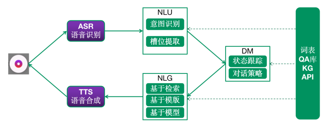 对话交互的主干流程如下图所示,从中不难发现几乎所有关键节点都与算法相关,算法是取得较好对话交互效果的核心能力。