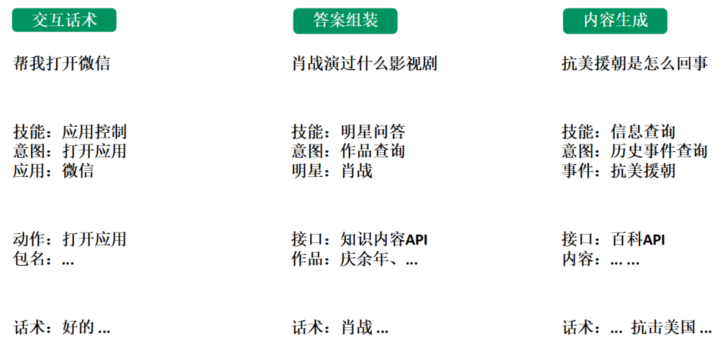 在对话生成方面,目前行业里主要有基于模板、基于检索、基于模型三种类型,由于生成式模型可控性弱,目前小布主要采用基于模版和基于检索的方案,生成式模型仍在预研中。