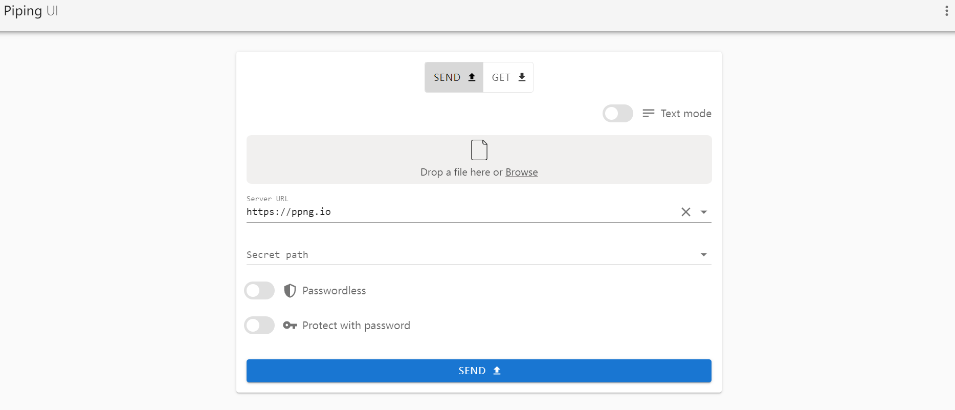 Piping 还提供了美观的 Web UI 界面,打开即用:https://piping-ui.org/