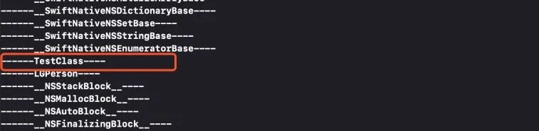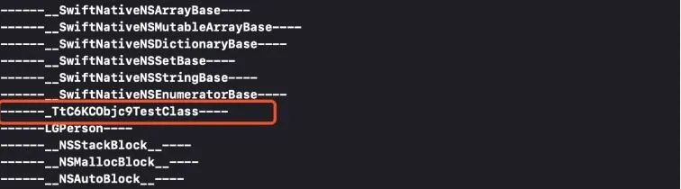 这里我们看到一个 className是TestClass,一个是_TtC6KCObjc9TestClass
