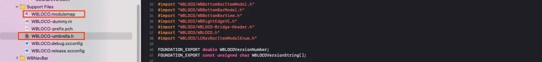 WBLOCO开启module后,额外生成WBLOCO.modulemap和WBLOCO-umbrella.h两个文件