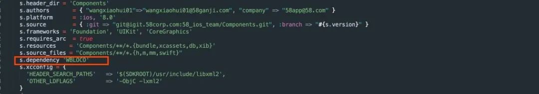 调用方需要在自己的podspec里添加moudule依赖,s.dependency ‘被调用方的pod库’使用方式