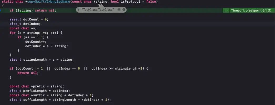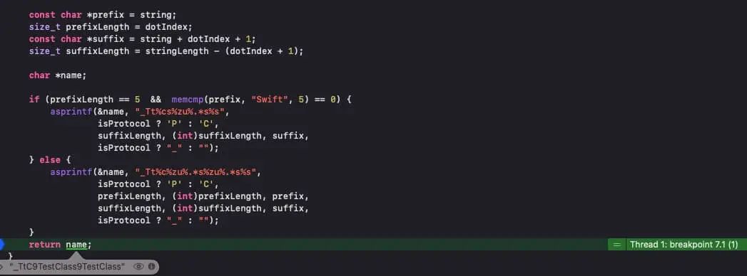 通过伪代码我们发现这里并没有看出异常,加不加@objc(TestClass)都一样,那肯定是后面流程有问题。那只能调试源码(当前为objc-781)