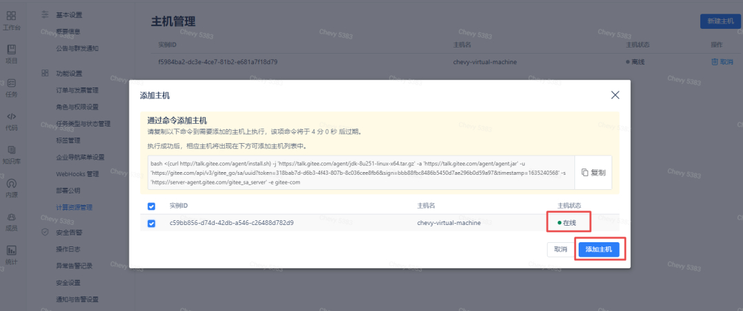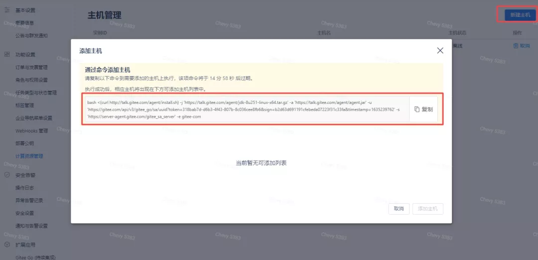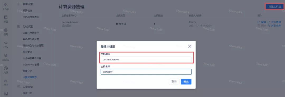 4. 添加主机(流水线作业的服务器):企业管理 > 基本管理设置 > 计算资源管理 > 新建主机组