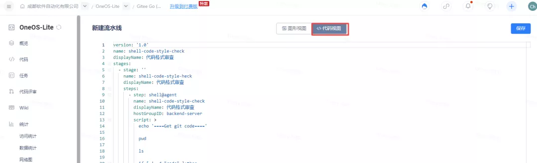 在这里以Gitee Go做代码格式审查为例详细描述Gitee Go搭建流程: