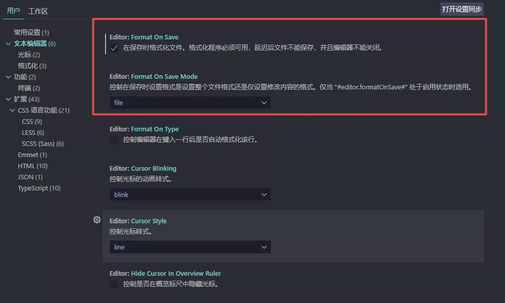 再进行VS Code保存时自动格式化的设置,这样代码保存就完成了格式化: