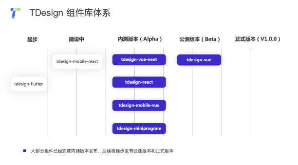 目前,TDesign 的大部分组件已经完成了内测版本的发布,后续将逐步发布公测版本和正式版本。