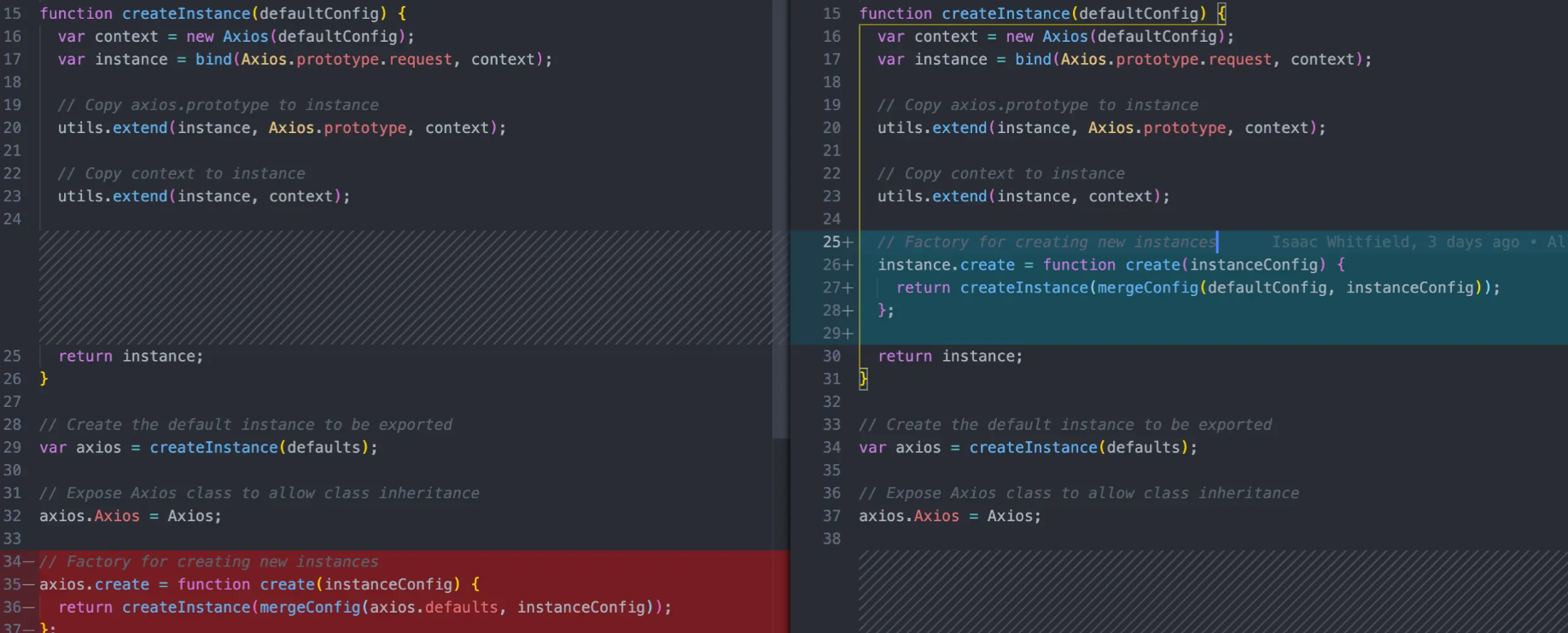 针对axios.create 方法,正当整理写此篇解析文章期间,发现了 于2021年9月5号有了这么一条PR更新,为什么这么做那:是为了大型应用、或多域使用多实例情况下, 可以针对已经构造的实例再次封装构造,提供深度构造控制器能力:详情见此条PR
