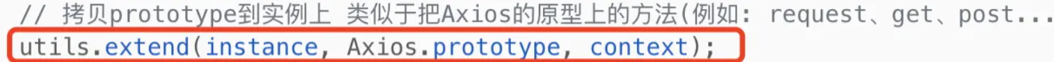 // 拷贝prototype到实例上 类似于把Axios的原型上的方法(例如: request、get、post...)继承到实例上,this指向为context