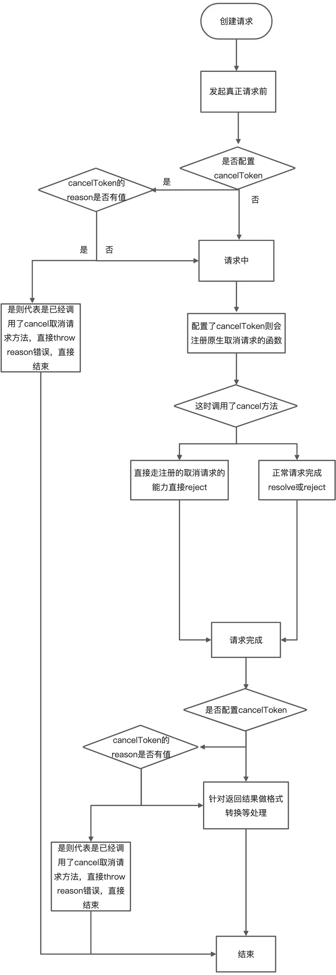 这里简单梳理下,在CancelToken中 会创建一个promise实例,和一个reason存储取消信息,当使用者调用source.cancel(message)方法时,会将该promise实例状态改为fulfilled,同时根据参数message创建reason错误信息实例,实例上还有__CANCEL__属性,标识他是取消请求返回的信息。