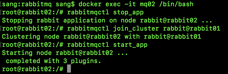 docker run -d --hostname rabbit02 --name mq02 --link mq01:mylink01 -p 5672:5672 -p 15672:15672 -e RABBITMQ_ERLANG_COOKIE="javaboy_rabbitmq_cookie" rabbitmq:3-management