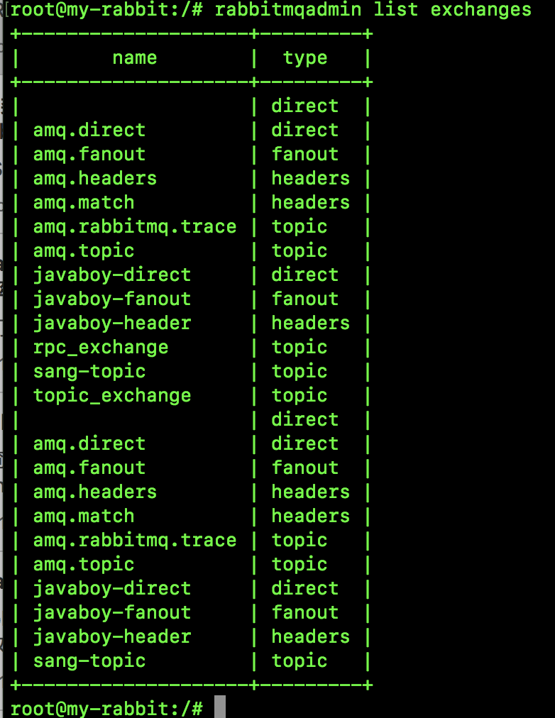 - Exchange: Message 到达 Broker 的第一站,根据分发规则,匹配查询表中的 routing key,分发消息到 queue 中去。常用的类型有:direct (点对点), topic(发布订阅) 以及 fanout (广播)。