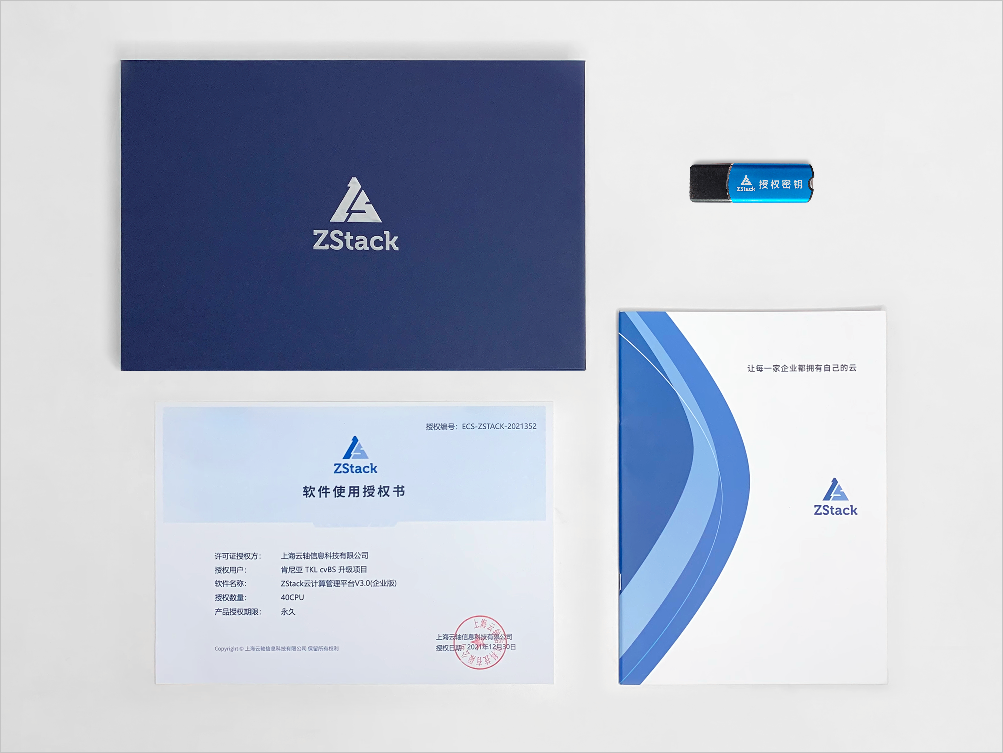 从ZStack Cloud 4.3.12开始,许可证新增支持USB Key授权方式(面向付费用户)。用户只需将一个U盾(内含加密保护的授权文件)插到一个管理节点上即可完成授权,安全便捷。