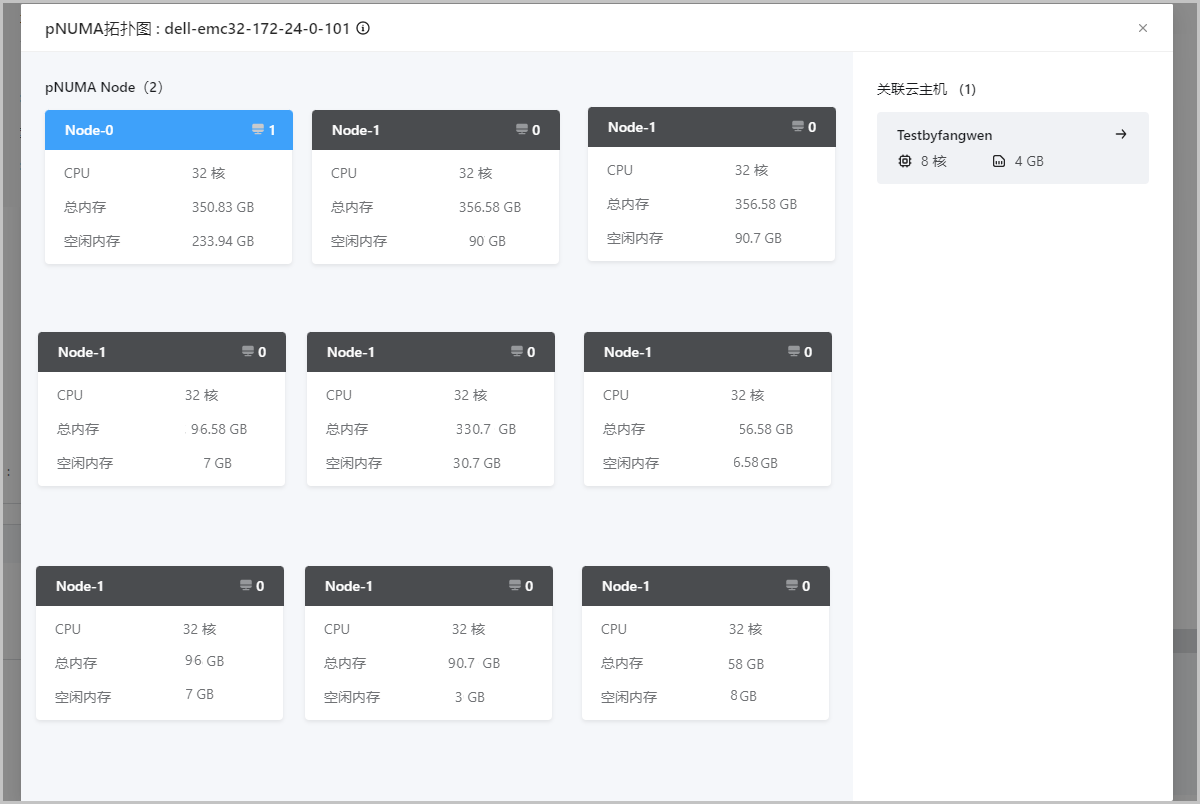 配置vNUMA完成后,用户可直观查看云主机vNUMA拓扑及其关联的物理机pNUMA节点拓扑。
