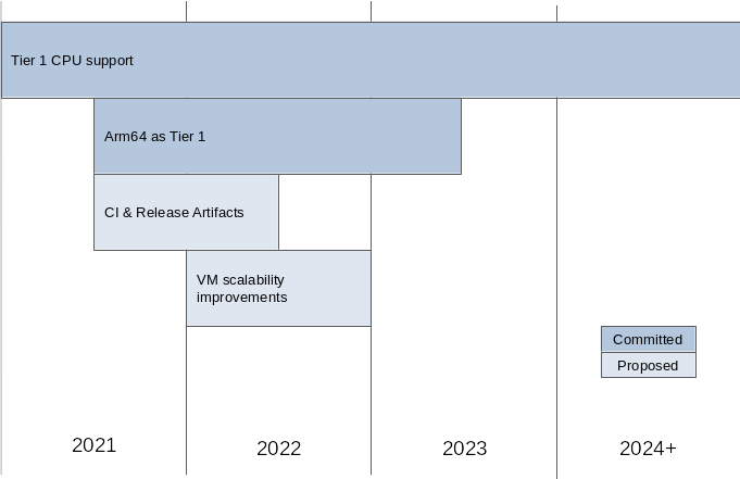 在商用服务器方面,基金会表示将继续投资支持 Tier 1 CPU 的工作,包括一般的错误修复和性能改进。这将包括对 Tier 1 级别架构供应商的新 CPU 的基础硬件支持,以及对新指令集架构级功能的支持。