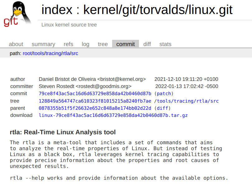 用于 Linux 实时系统分析的新工具“RTLA” 已加入 Linux 5.17 内核源码树。RTLA 全名 real-time Linux analysis tool ,是一款实时 Linux 分析和跟踪工具,由 Red Hat 的内核开发人员 Daniel Bristot de Oliveira 开发并公布,原理是利用 Linux 内核的跟踪功能来分析和收集数据,并提供了一个直观的界面来guan'ca和处理追踪到的数据。