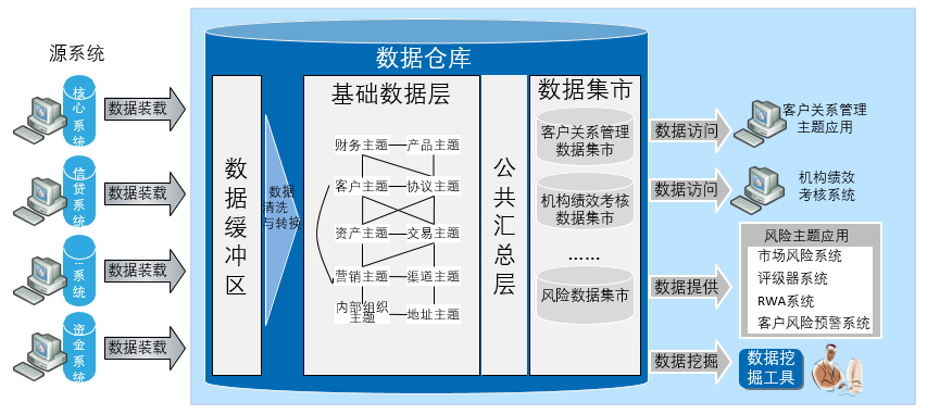 到了1980年代中后期,为解决数据库面对数据分析的不足,孕育出新一类产品数据仓库。让我们先来看下数据仓库的定义,数据仓库(Data Warehouse)是一个面向主题的、集成的、相对稳定的、反映历史变化的数据集合,用于支持管理决策和信息的全局共享。上图是数据仓库的应用架构,从中可见其做了若干阶段划分,简单可分为数据集成(装载)、数据加工(ETL)、数据汇聚、数据展示及挖掘。数据经过这一过程,被抽取到数据仓库中,并严格按照预先定义的模式被装载进来,经过多层加工形成数据集市,并最终提供给终端应用或进一步供挖掘使用。在技术实现上,主流采用MPP无共享存储架构,基于标准X86服务器,可实现数百节点的扩展。其对外提供标准的SQL能力和ACID特性,整体计算性能可在一定程度上随节点扩展可提升。