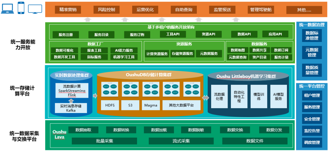 国内的偶数科技的技术路线与Snowflake在湖仓一体的思路非常相似。主要是依托云原生特性、存算分离架构、强事务特性、完整SQL标准、高性能并行执行等技术能力,实现高弹性、高性能、强扩展性、强兼容性以及上层支持机器学习等,帮助企业有效应对大规模、强敏态、高时效、智能化发展趋势。其产品技术架构可参考如下: