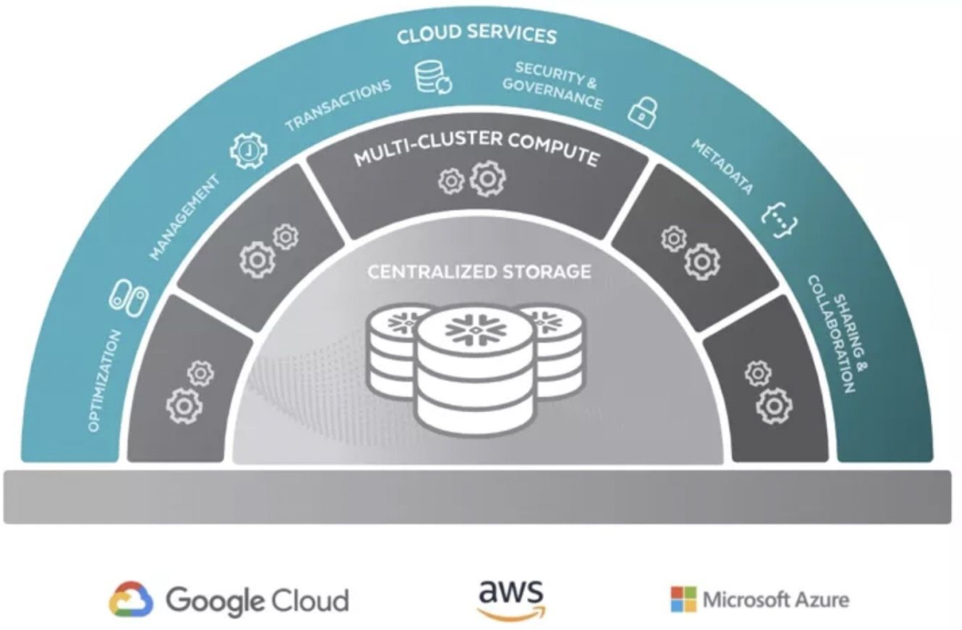 湖仓一体2.0,当前仍处于相对早期的阶段,它已经不只是一个纯粹的技术概念,而是被赋予了更多与厂商产品层面相关的含义。 在湖仓一体越来越火的同时,不同厂商也为它做出了各自的解读。 这其中比较有代表性的产品是Snowflake和国内的偶数科技等。 作为2020年的现象级产品-Snowflake,无疑是标杆型企业,其核心产品思想可参考下图。