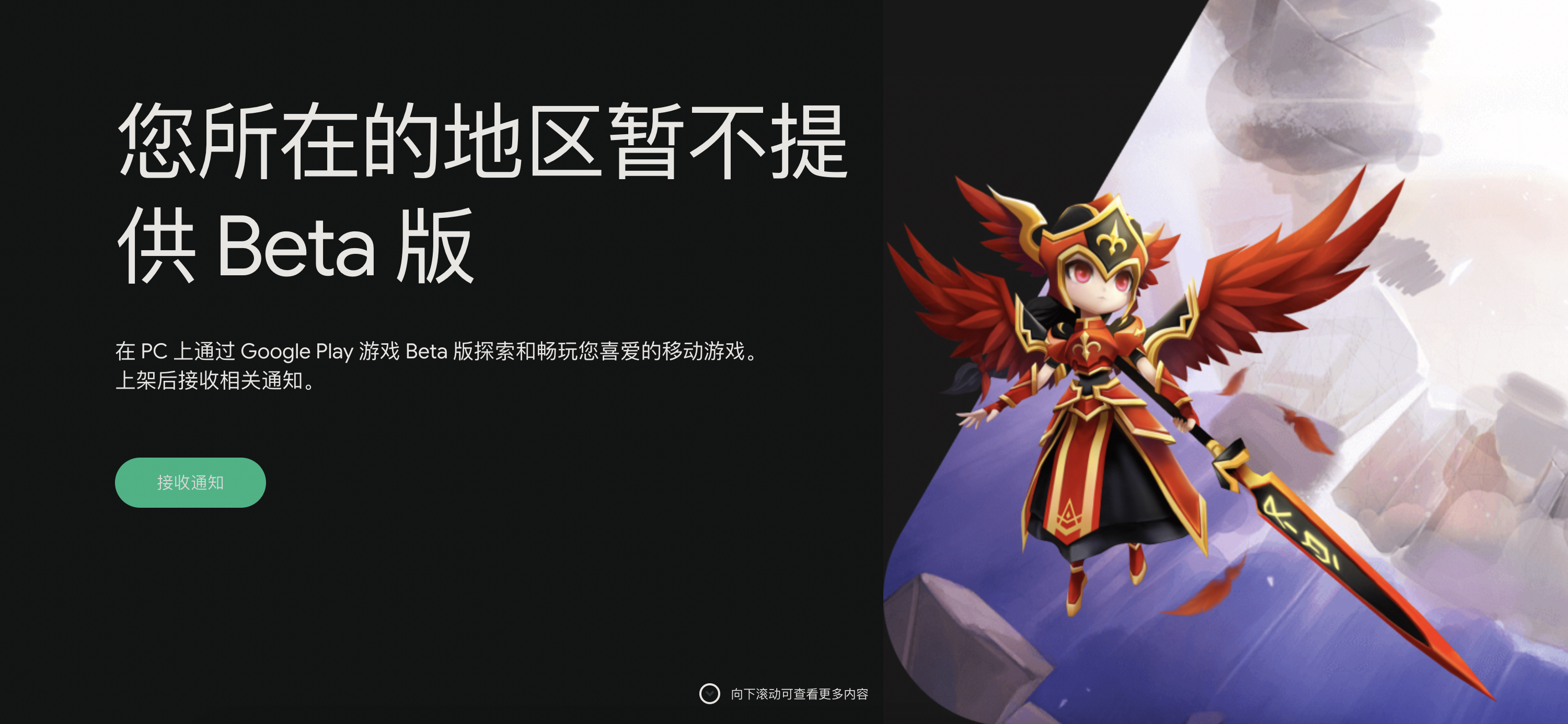 Google Play Games 测试版目前仅在三个国家和地区上线,其中包括香港地区、台湾地区和韩国,符合条件的用户可以访问这个链接注册(目前申请用户较多,需要等待),不符合条件的话将会显示下图这样的提示信息。Google 将在今年晚些时候将该应用的使用范围扩展到更多国家和地区。