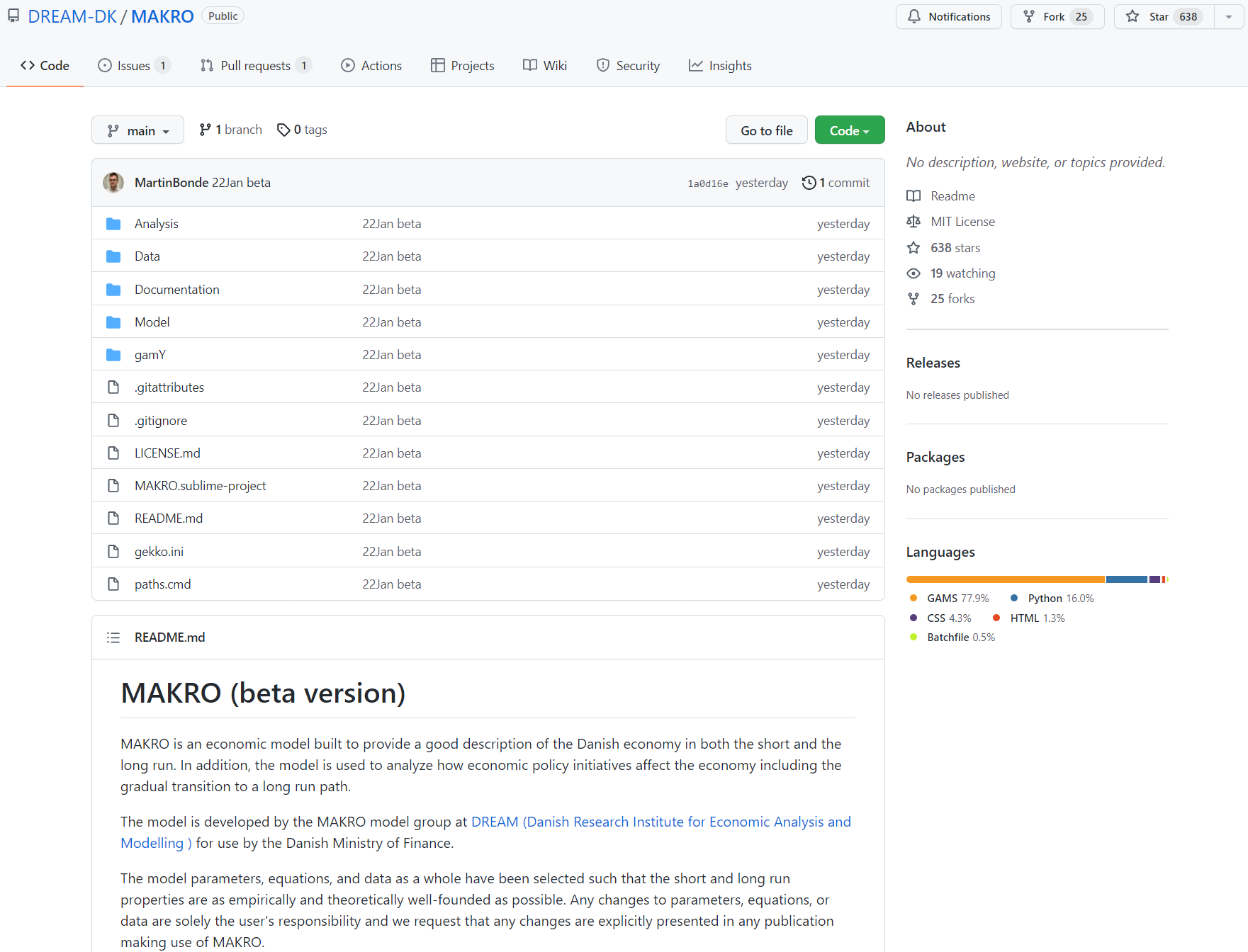 此模型由 DREAM 的 MAKRO 模型小组开发,目前正在被丹麦财政部使用。