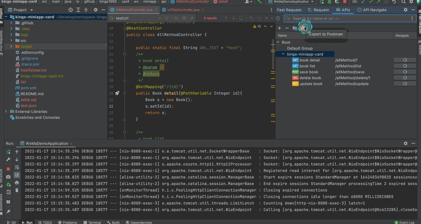 - 添加对导出api到Postman的支持