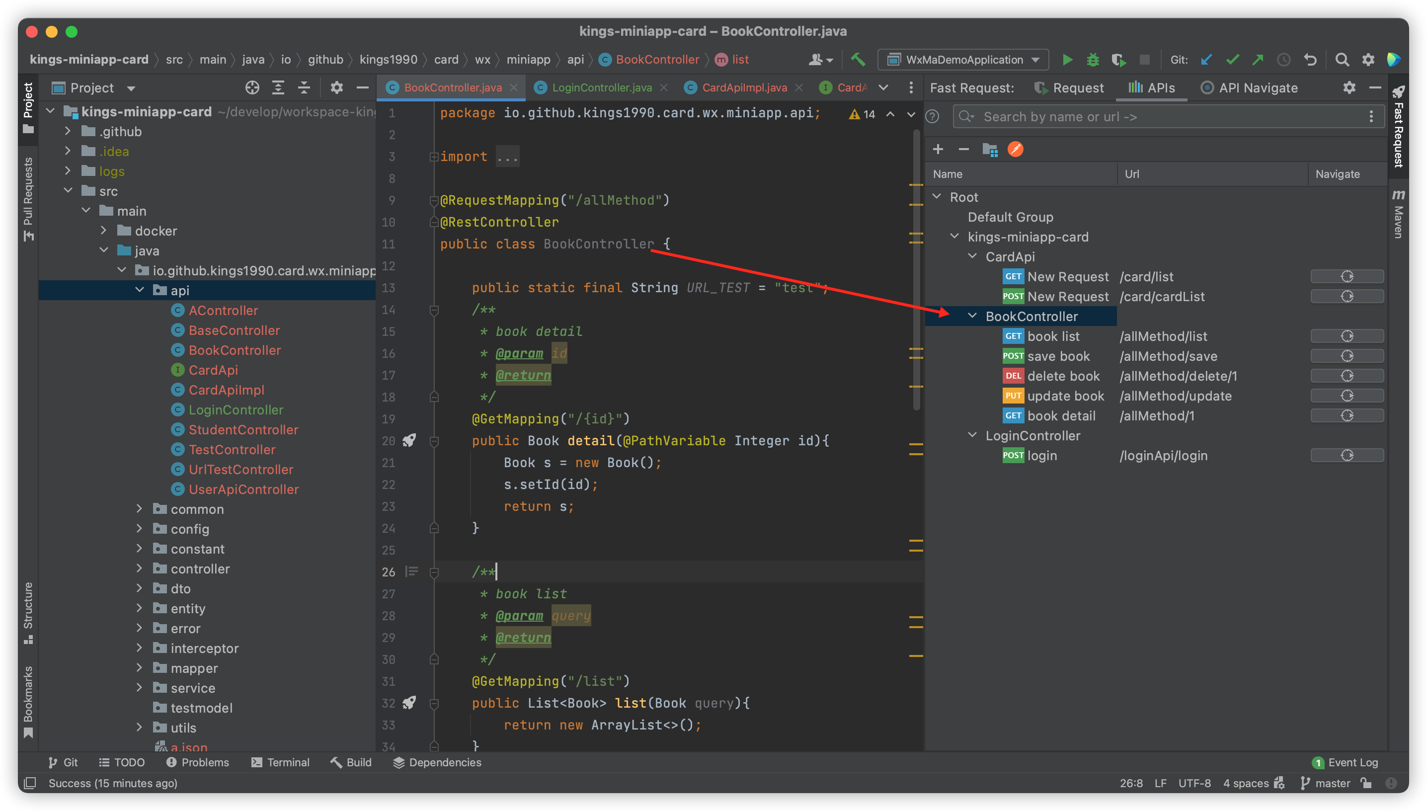 保存api的时候,api将会保存到对应的请求指定到控制器名所在的分组(更加直观)
