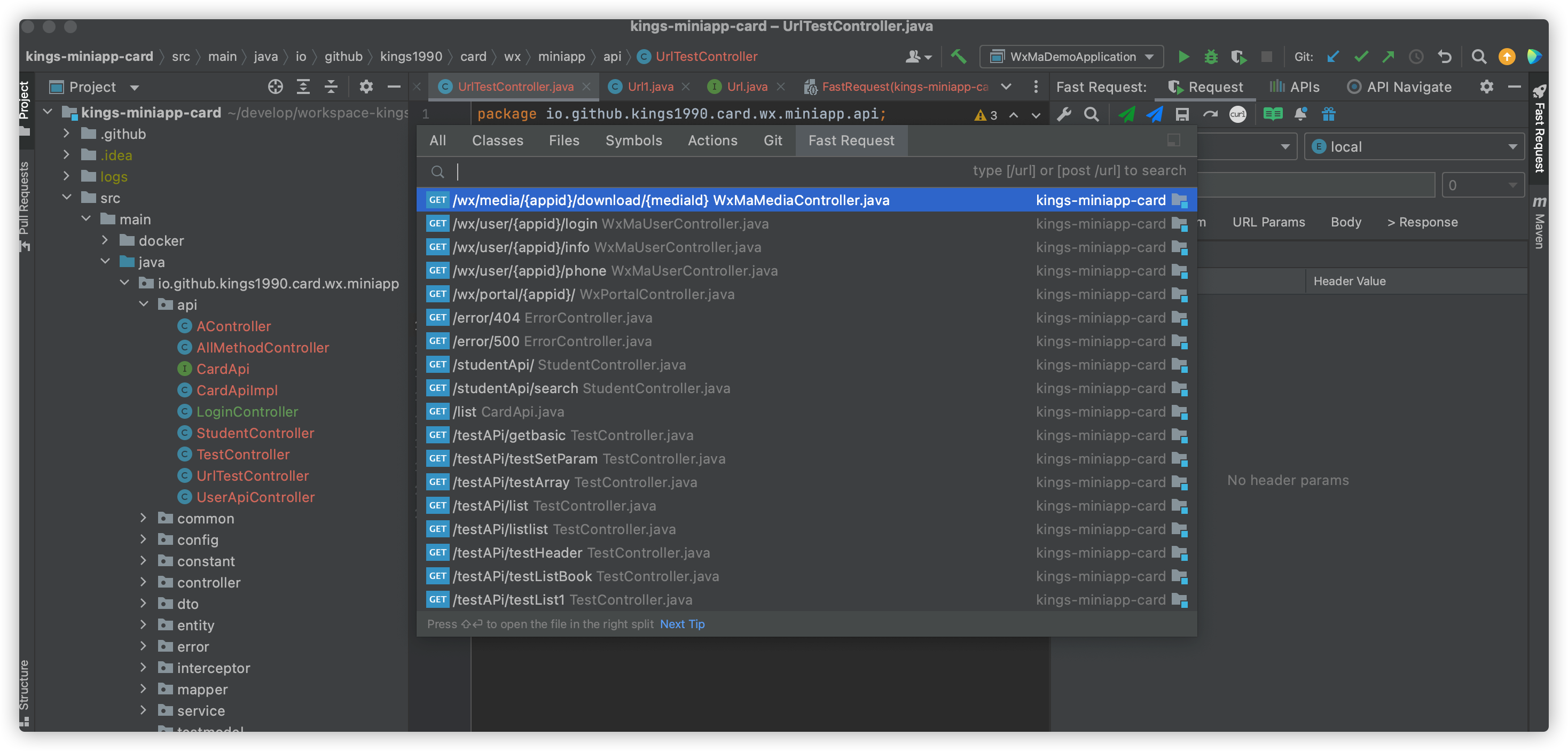 Restful Fast Request 是一个强大的 restful api 工具包插件(Http Client),可以根据已有的方法帮助您快速生成 url和 params。Restful Fast Request = API 调试工具+API 管理工具,它有一个漂亮的界面来完成请求、检查服务器响应、存储你的 api 请求和导出 api 请求,同时基于 idea 原生,调试代码更加快速、方便、简捷。