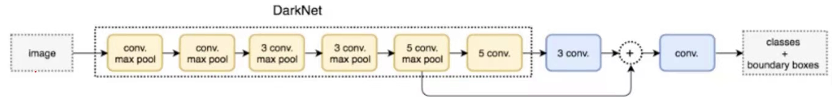 在上图中,我们可以看到主干网络采用了DarkNet的网络结构,在YOLOV1算法中,作者采用了GoogleNet这样一种架构来作为主干网络,它的性能要优于VGGNet的。DarkNet类似于VGGNet,采用了小的3*3的卷积核,在每次池化之后,整个通道的数量都会增加一倍,并且在网络结构中采用Batch Normalization来进行归一化处理,进而让整个训练过程变得更加的稳定,收敛速度变得更快,达到模型规范化的效果。