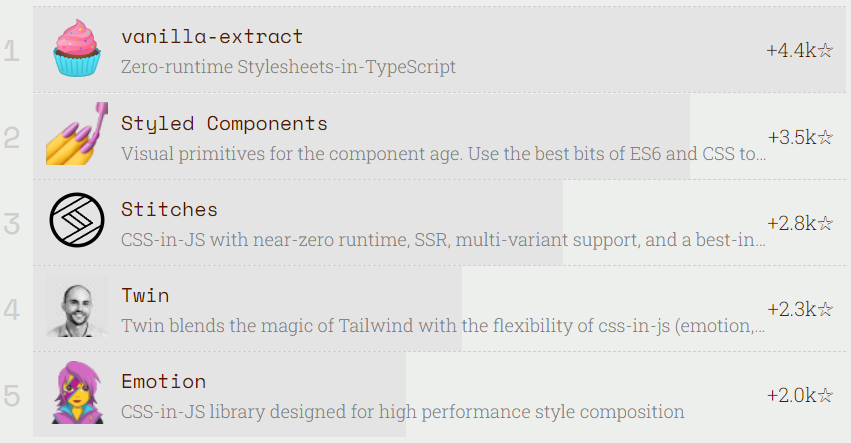 最后在第三位的 Strapi 是 “Headless CMS” 的领导者,就是那些提供丰富的仪表盘让用户管理数据和现代 API 让开发者从数据中建立任何东西的应用程序。最新版本提供了一个建立在 React 组件库之上的设计系统。