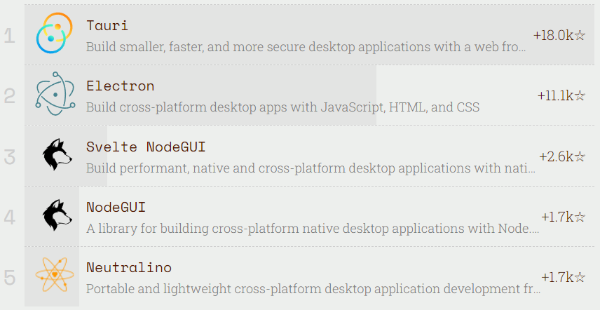 第五名,Tauri 是一个使用 Web 技术构建桌面应用程序的解决方案。