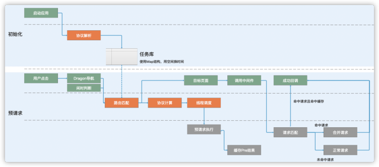 - 闲时预加载 智能调度:基于用户行为预测,利用当前页面空闲时间,提前加载下个预测页面的资源;强制调度:无行为分析,利用当前页面空闲时间,提前加载下个配置页面的资源。