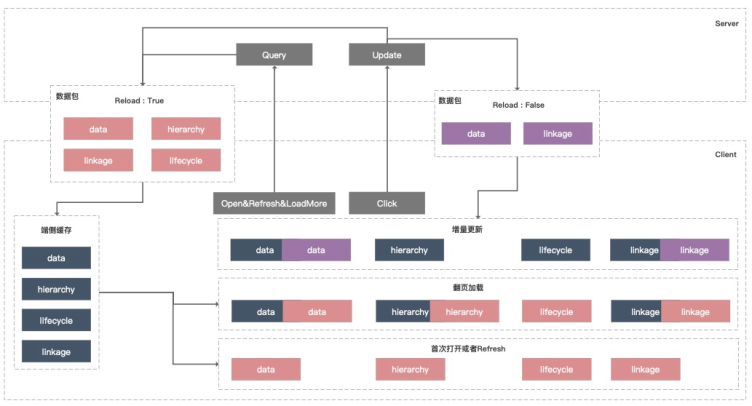 因此初步的解决方式是:针对二刷场景服务端仅返回需要增量更新的数据元素,客户端借助上次数据进行本地增量合并更新,这样子即降低了服务端的请求耗时,同时也能降低数据量大小从而减少传输和解析耗时(当然多了一次对比过程耗时,基本可以忽律不计)