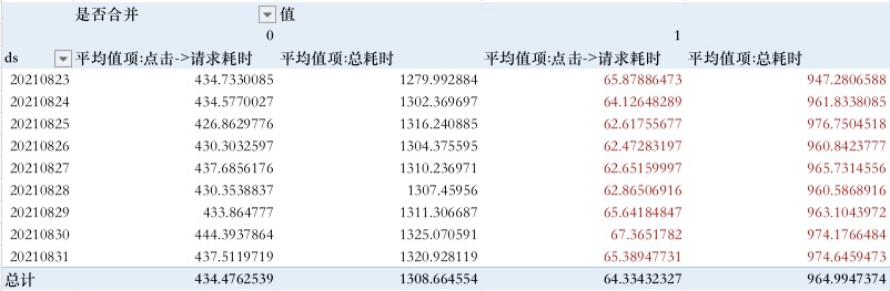 - 借助AB实验分析,优化带来了100ms的性能提升(701.62ms->604.74ms)提高14.29%