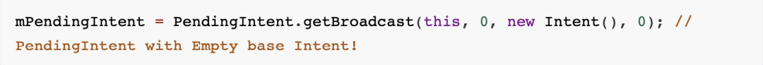 第二个案例来源于CanSecWest2016的分享,即时通信软件LINE App启动服务时泄漏了一个PendingIntent对象,且base Intent为空Intent: